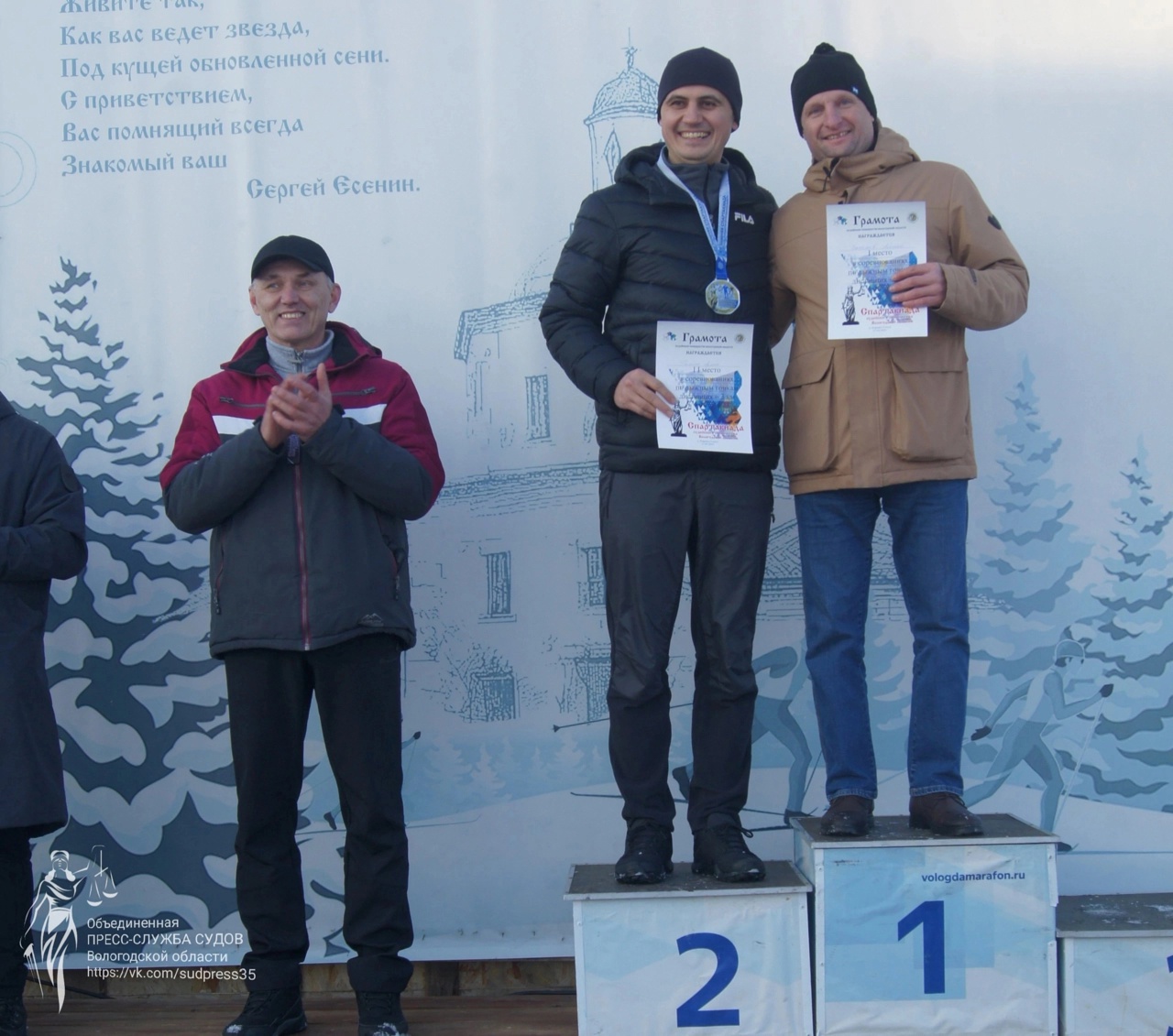 В рамках проведенной судейским сообществом Вологодской области XII зимней Спартакиады прошла лыжная гонка свободным стилем, 2 место в которой на дистанции 3 км занял судья Устюженского районного суда Галоян А.Л. Поздравляем Армена Лориковича с успешным выступлением и желаем ему дальнейших спортивных достижений.